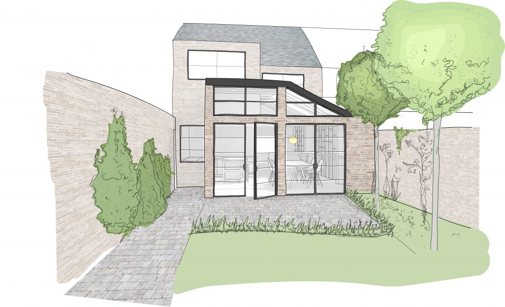 The rear of the property is south facing, so making use of as much natural light in what is currently quite a dark ground floor is important. We will aim to use as much of the allowed height as possible to give the kitchen/dining area a real sense of space. This, combined with a carefully selected material palette, will give the open plan downstairs a warm but open feel while still modernising the scheme to contemporary standards thus creating a large space for the family to relax in, to create and entertain.