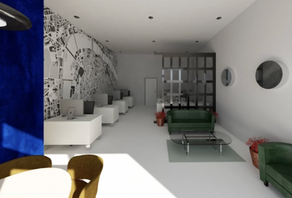 We designed the office space, working with the clients and developers and taking into account stringent fire, health and safety, electrical, AC, lighting, noise, heating, façade, fire alarm and planning controls in a concrete shell space. Designing an office for seven people with an accessible toilet was intensive yet enjoyable.