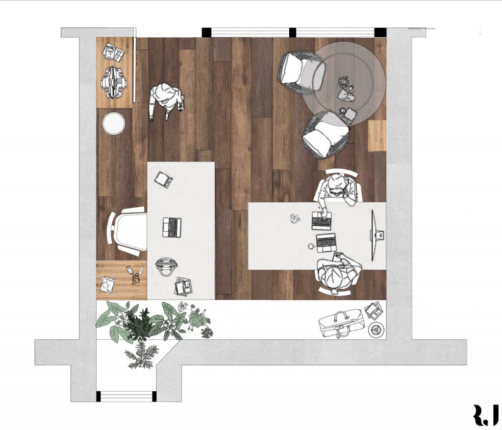 The client approached us with the intention of achieving a minimalistic space in a small office. We advised and agreed on a colour palette of soft whites, grey and wooden accents to bring warmth to the office. By exposing the right wall of the office and highlighting some of the furniture pieces we created more openness in a small space. Oak wooden flooring helped in tying the space together with wooden furniture pieces. We used some of the original furniture that they had and changed to tables and chairs with space-economising chairs to make the office appear light, open and airy. By making these changes we were able to take advantage of the large windows both as a source of light and being a design feature in themselves by framing the light. All of these helped to create an office space which met our client’s expectations.